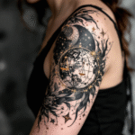 Tetování znamení zvěrokruhu váhy a souhvězdí na rameno