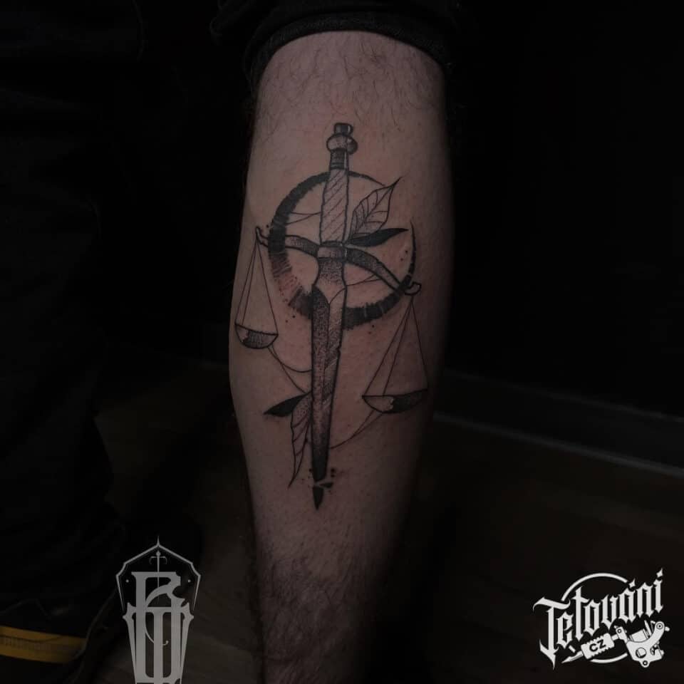 Tetování znamení zvěrokruhu, Váhy, Měsíc na lýtku