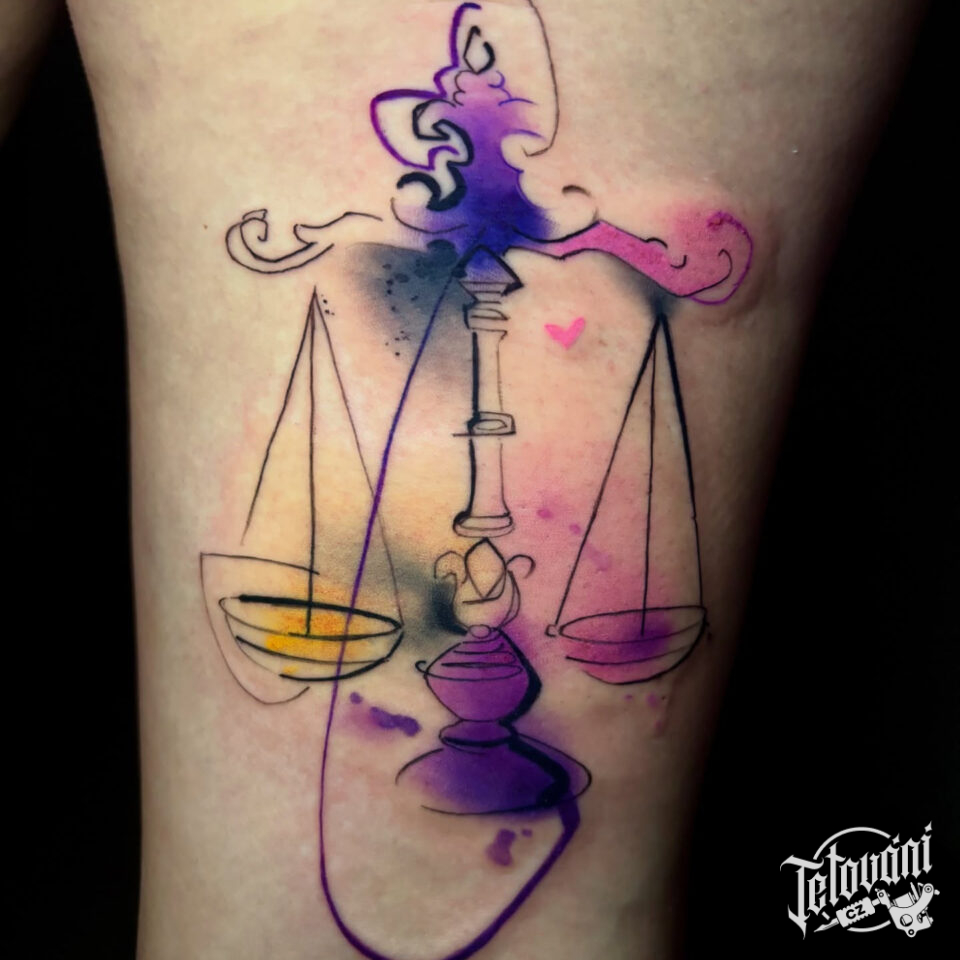 Tetování znamení zvěrokruhu, váhy na lýtko