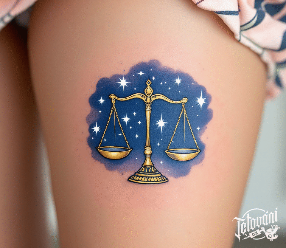 Tetování znamení zvěrokruhu váhy, souhvězdí na stehno