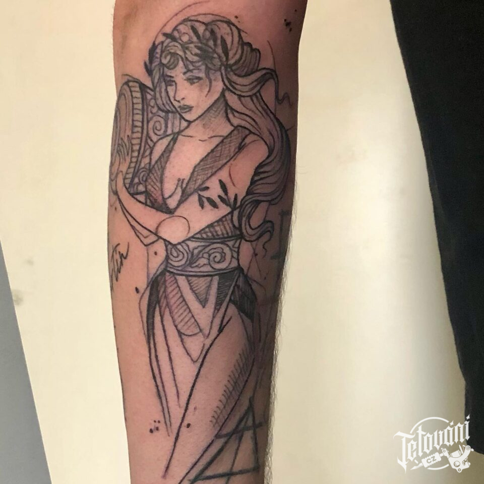 Tetování znamení zvěrokruhu Vodnář na předloktí