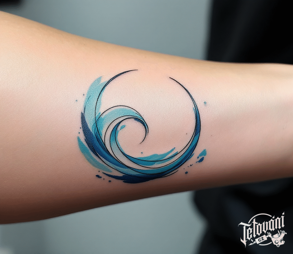 Tetování znamení zvěrokruhu vodnář, čáry, živel na předloktí