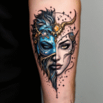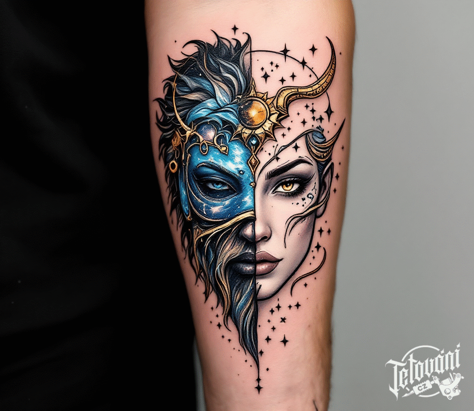Tetování znamení zvěrokruhu, vodnář, portrét, žena na předloktí
