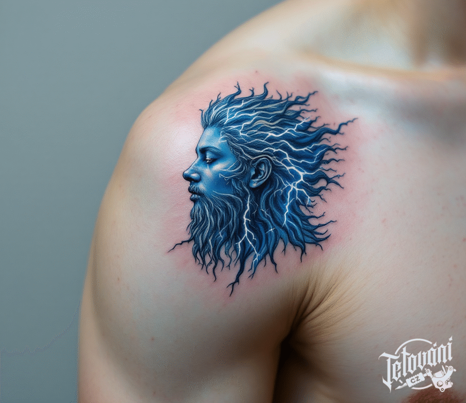 Tetování portrét, znamení zvěrokruhu, vodnář na rameno
