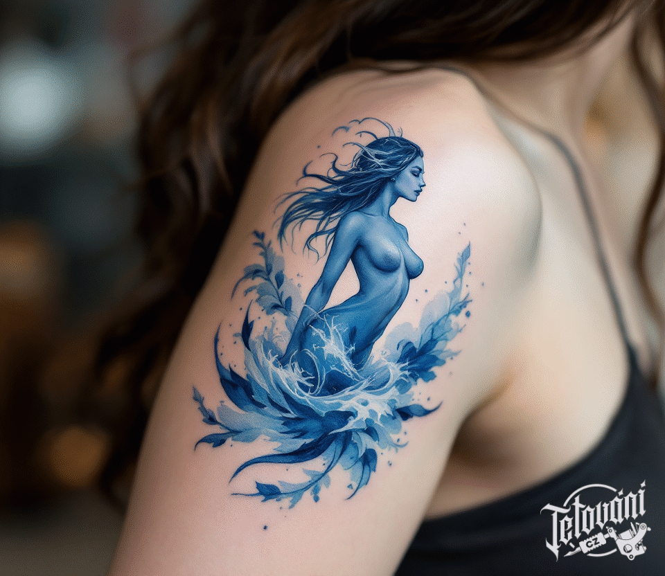 Tetování živel, květiny znamení zvěrokruhu, vodnář na rameno