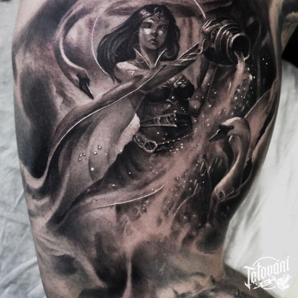 Tetování znamení zvěrokruhu, zvířata labutě, symboly na rameno