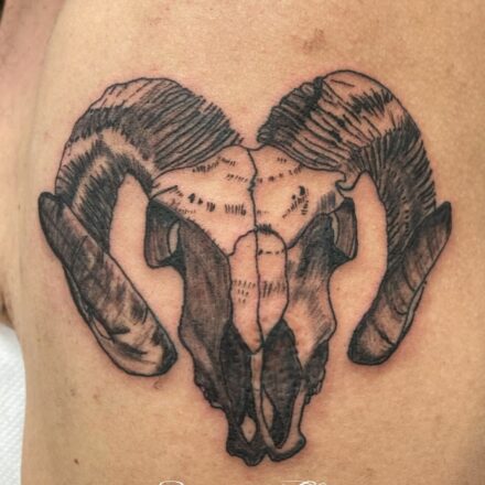 Tetování znamení zvěrokruhu, zvíře beran, květiny na paži