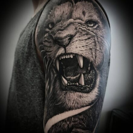 Tetování znamení zvěrokruhu, zvíře lev na rameno