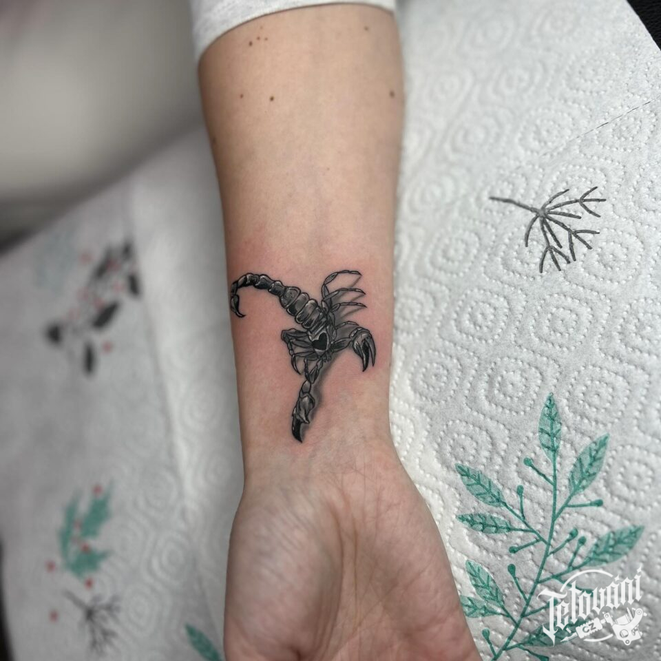 Tetování znamení zvěrokruhu, zvíře, škorpion, štír na předloktí