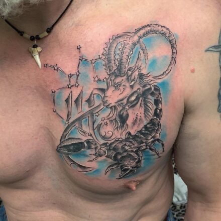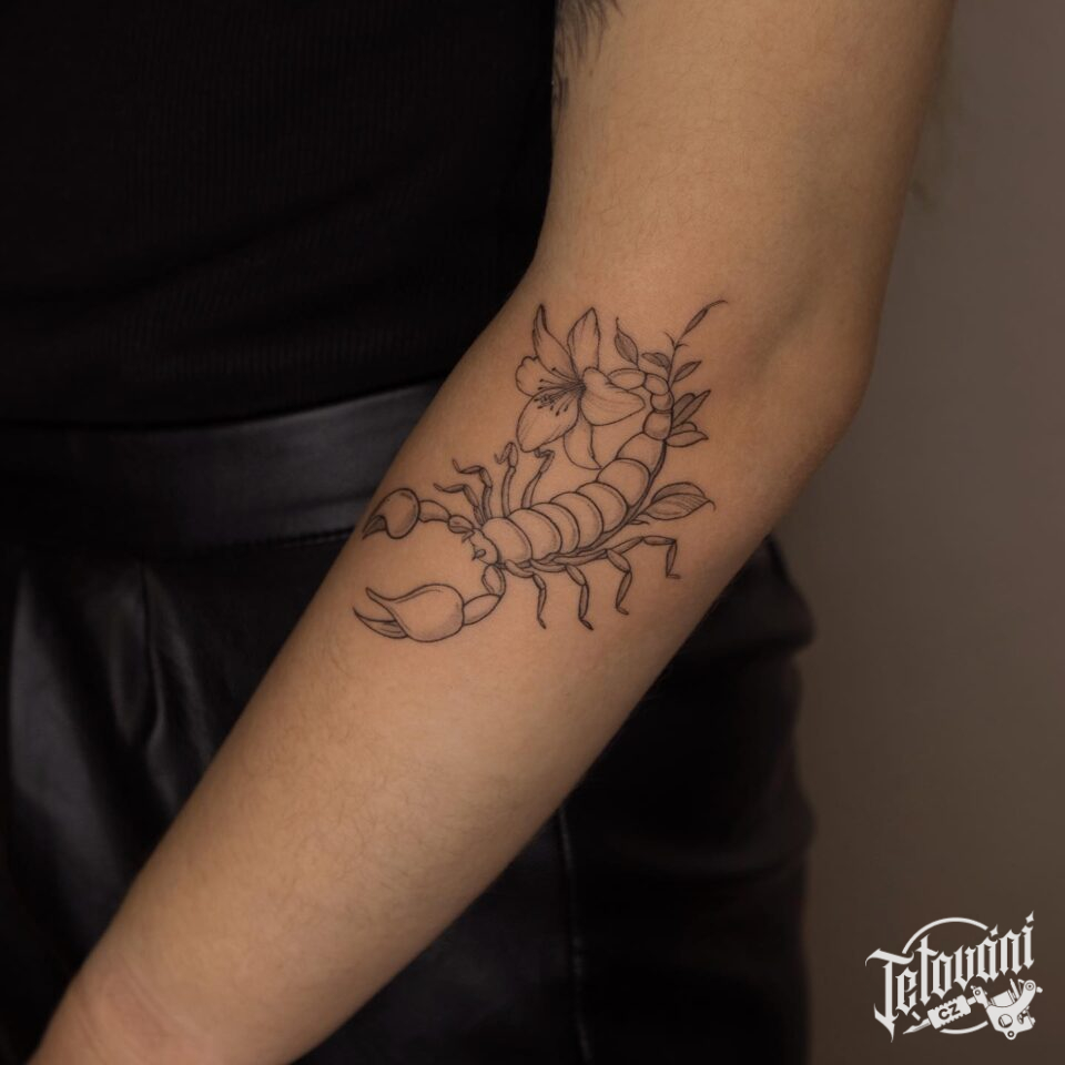 Tetování znamení zvěrokruhu, zvíře, šťír, škorpion na předloktí
