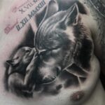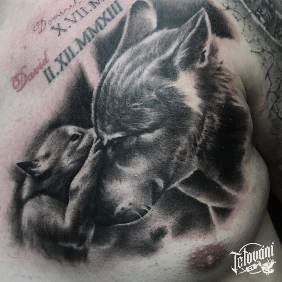 Tetování zvářata vlci, symbol rodiny na hrudník