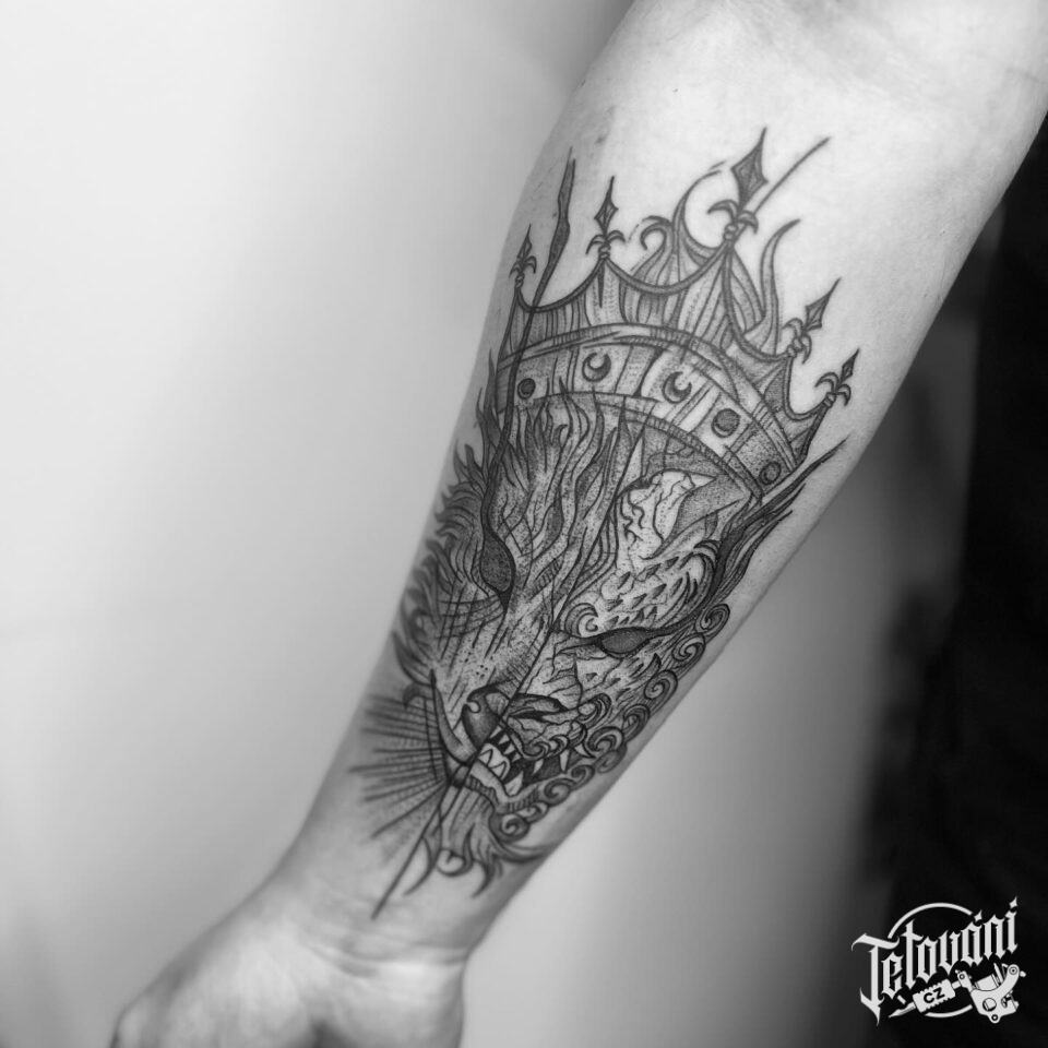 Tetování zvířata a koruna na předloktí