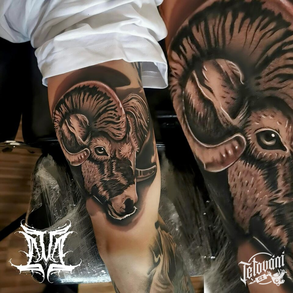 Tetování zvířata, beran a beran znamení zvěrokruhu na rameno