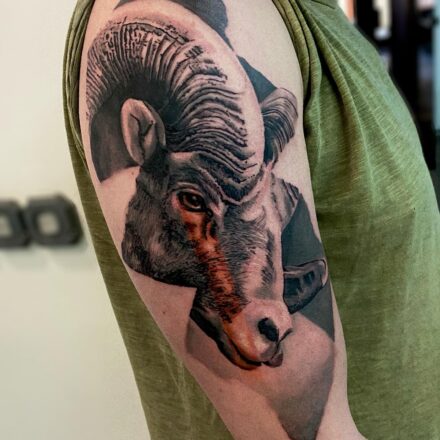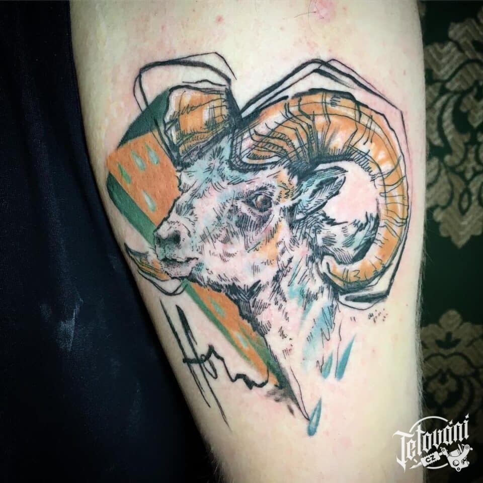 Tetování zvířata, beran a beran znamení zvěrokruhu na rameno