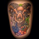 Tetování zvířata, beran znamení zvěrokruhu na stehno