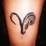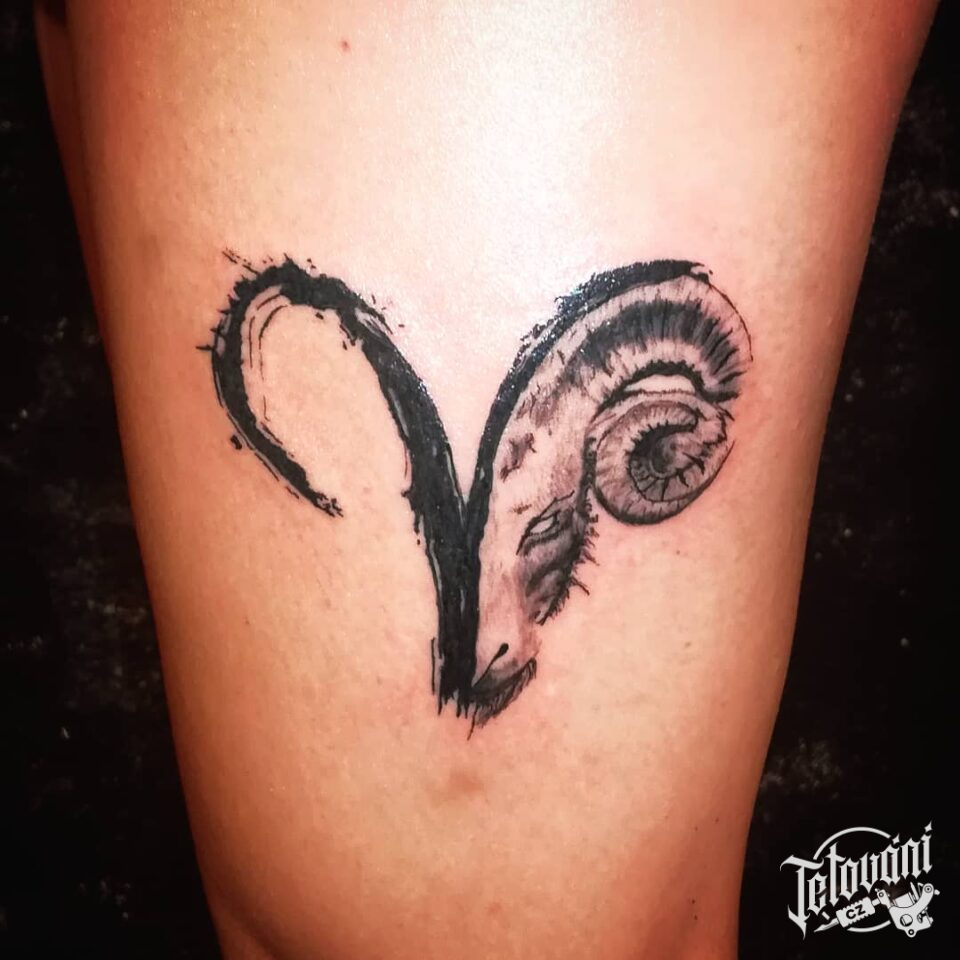 Tetování zvířata, beran a beran znamení zvěrokruhu na stehnu