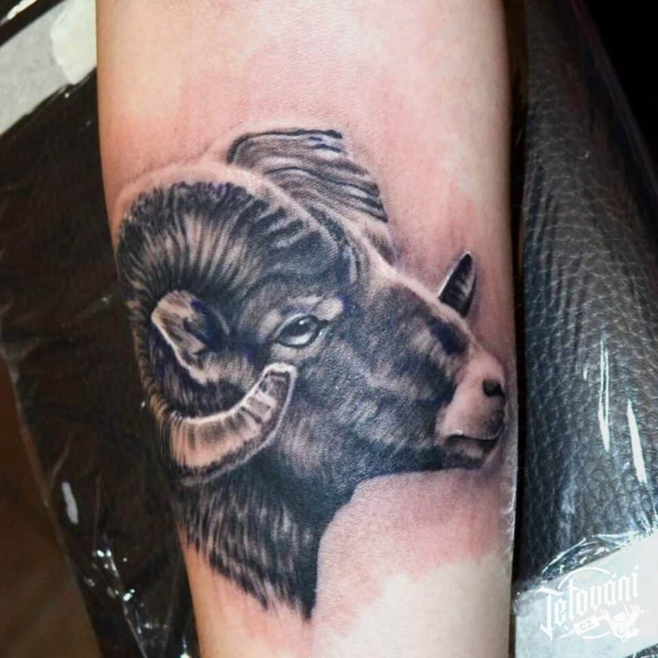 Tetování zvířata, beran a znamení zvěrokruhu beran na předloktí