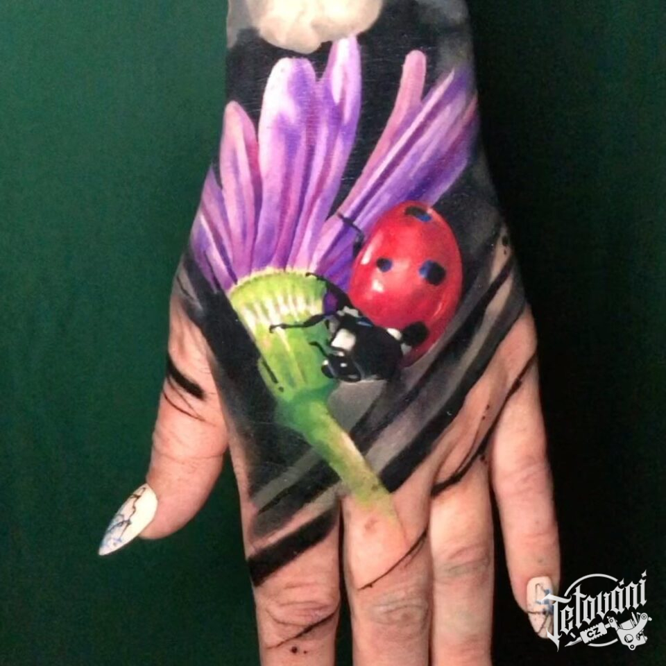 Tetování zvířata, beruška na hřbetu ruky