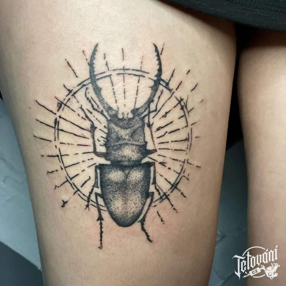 Tetování zvířata, brouk na stehně