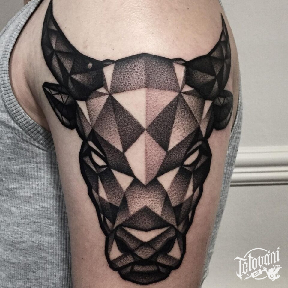 Tetování zvířata, býk, znamení zvěrokruhu na rameni