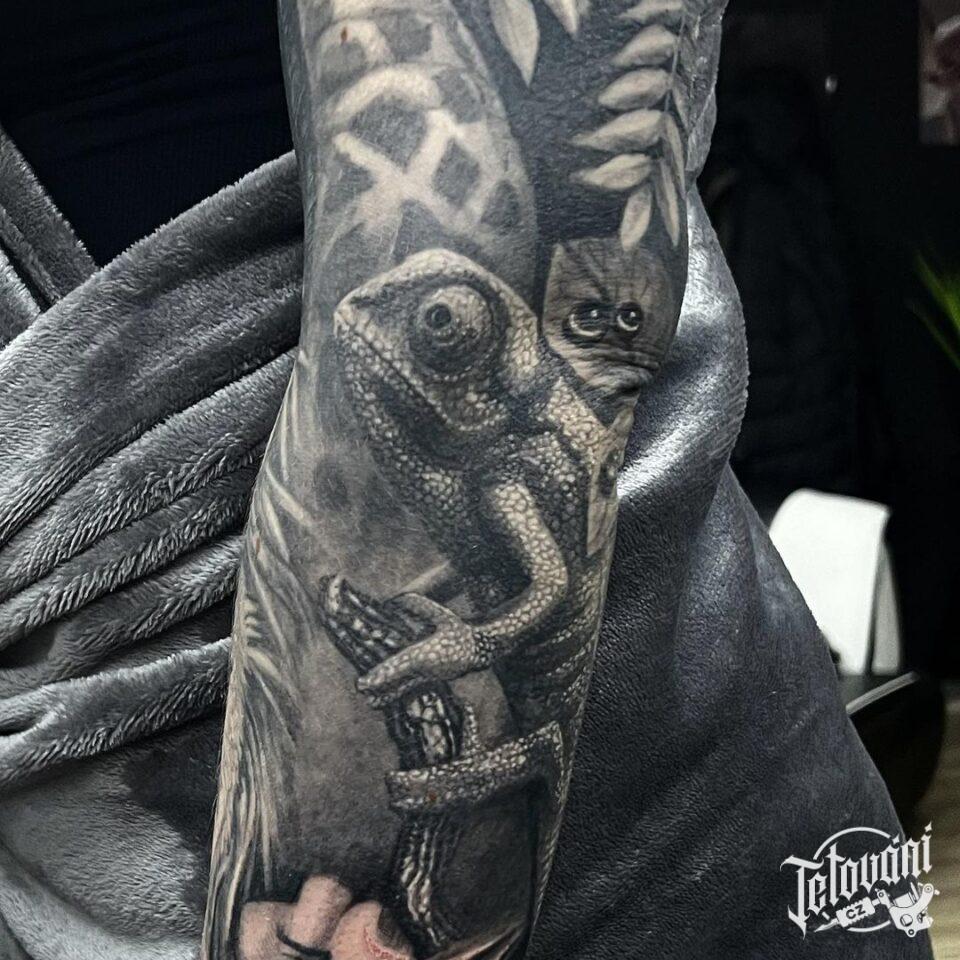 Tetování zvířata, chameleon na předloktí