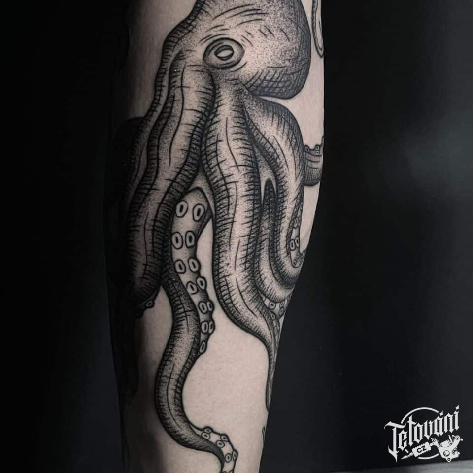 Tetování zvířata, chobotnice na lýtku