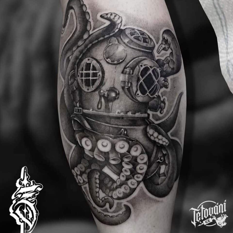 Tetování zvířata, chobotnice na lýtku