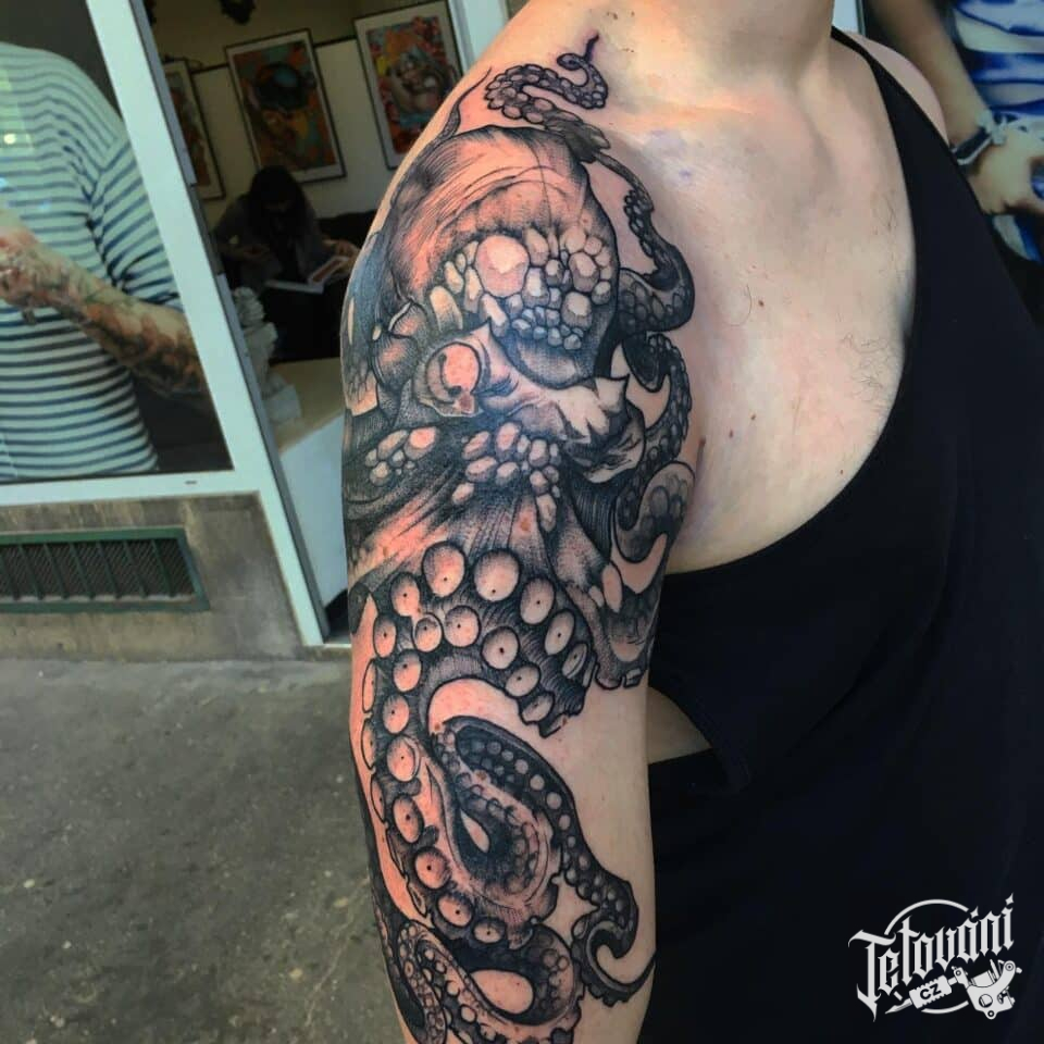 Tetování zvířata, chobotnice na rameni