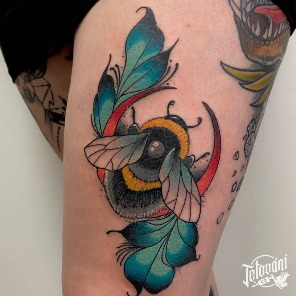 Tetování zvířata, čmelák na stehně