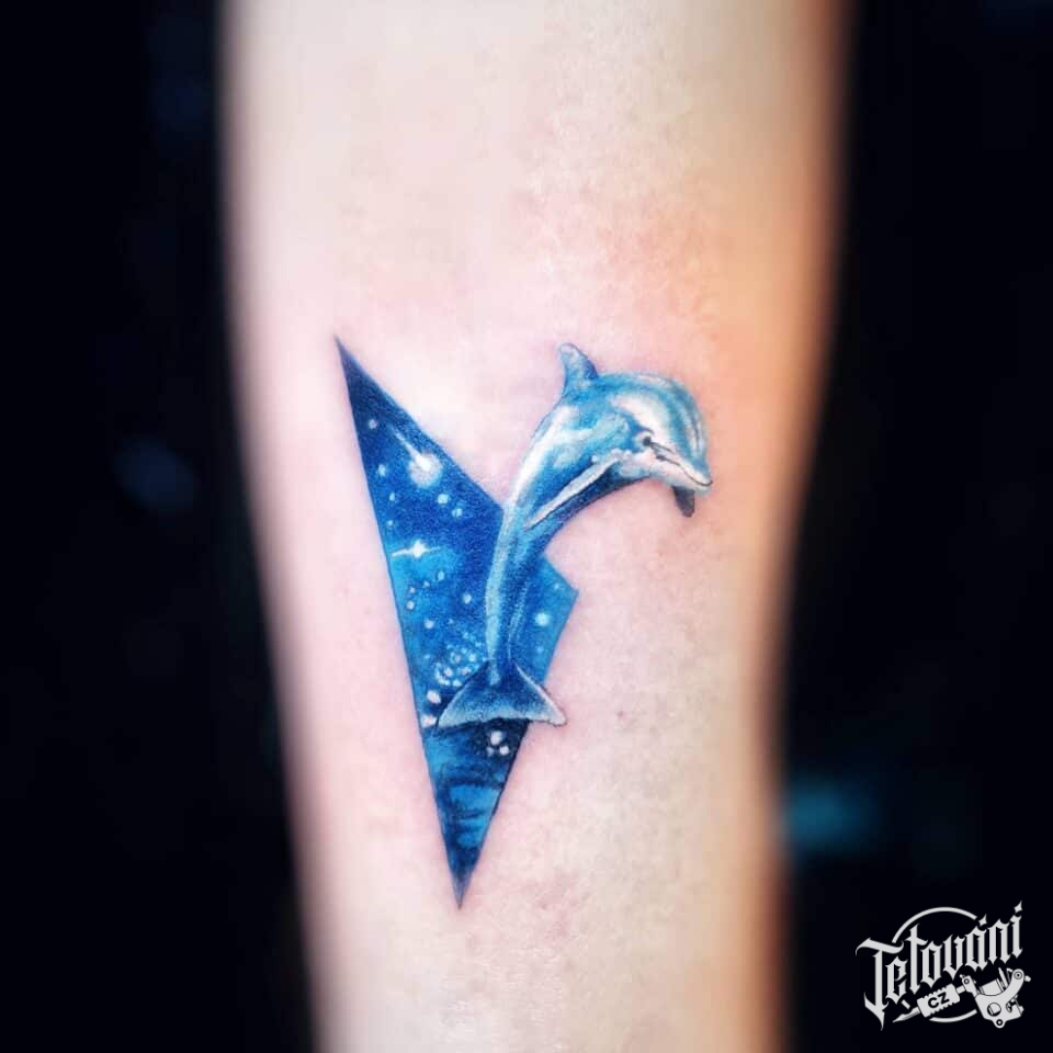 Tetování zvířata, delfín na předloktí