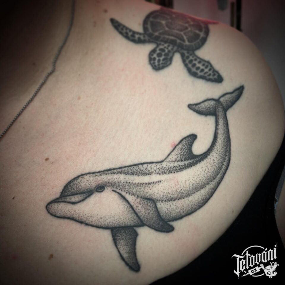 Tetování zvířata, delfín pod klíční kost
