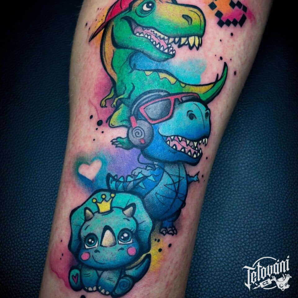 Tetování zvířata dinosauři symbol jako rodina, děti na lýtko