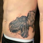 Tetování zvířata, dinosaurus a žralok na břichu