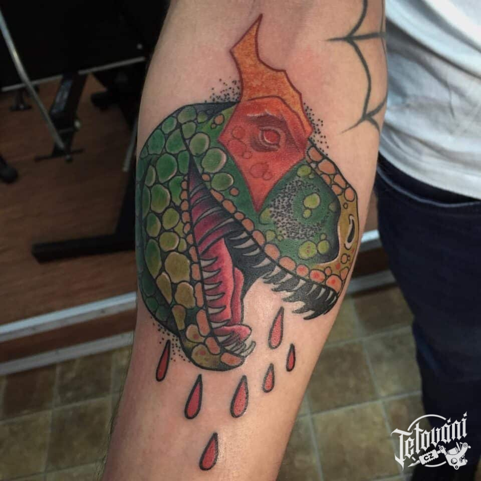 Tetování zvířata, dinosaurus na předloktí