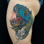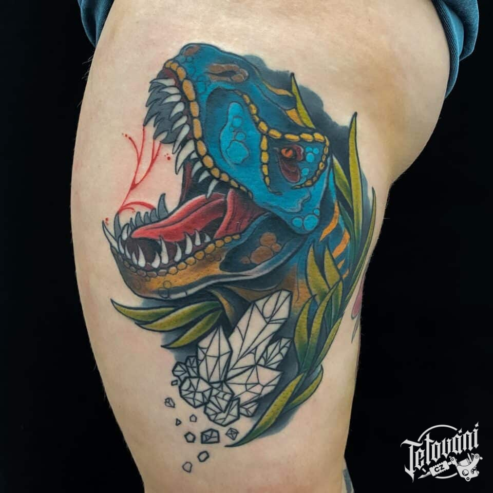 Tetování zvířata, dinosaurus na stehně