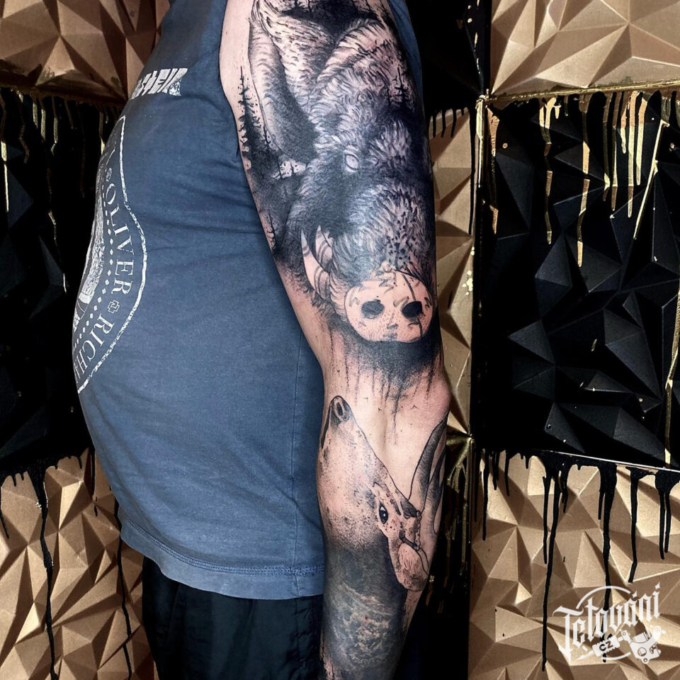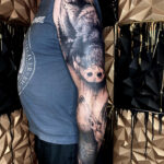 Tetování zvířata, divoké prase a srnec, rukáv