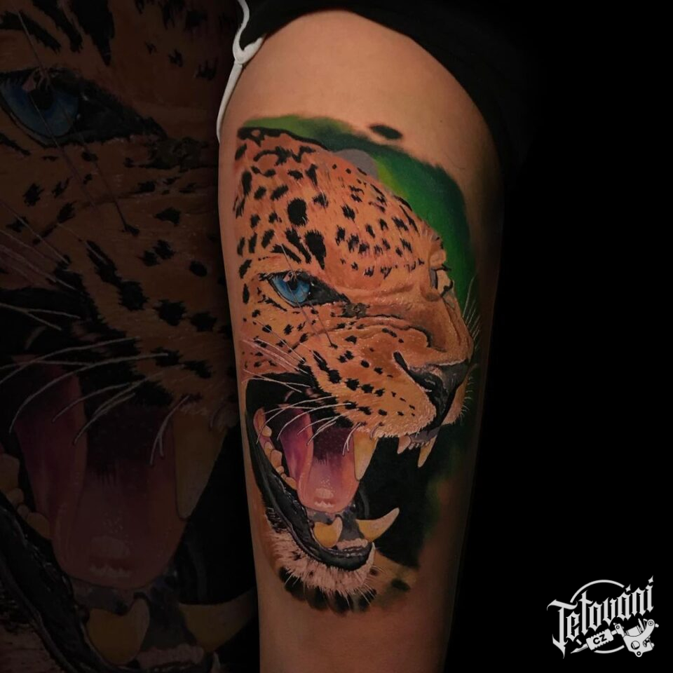 Tetování zvířata, gepard na stehně