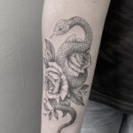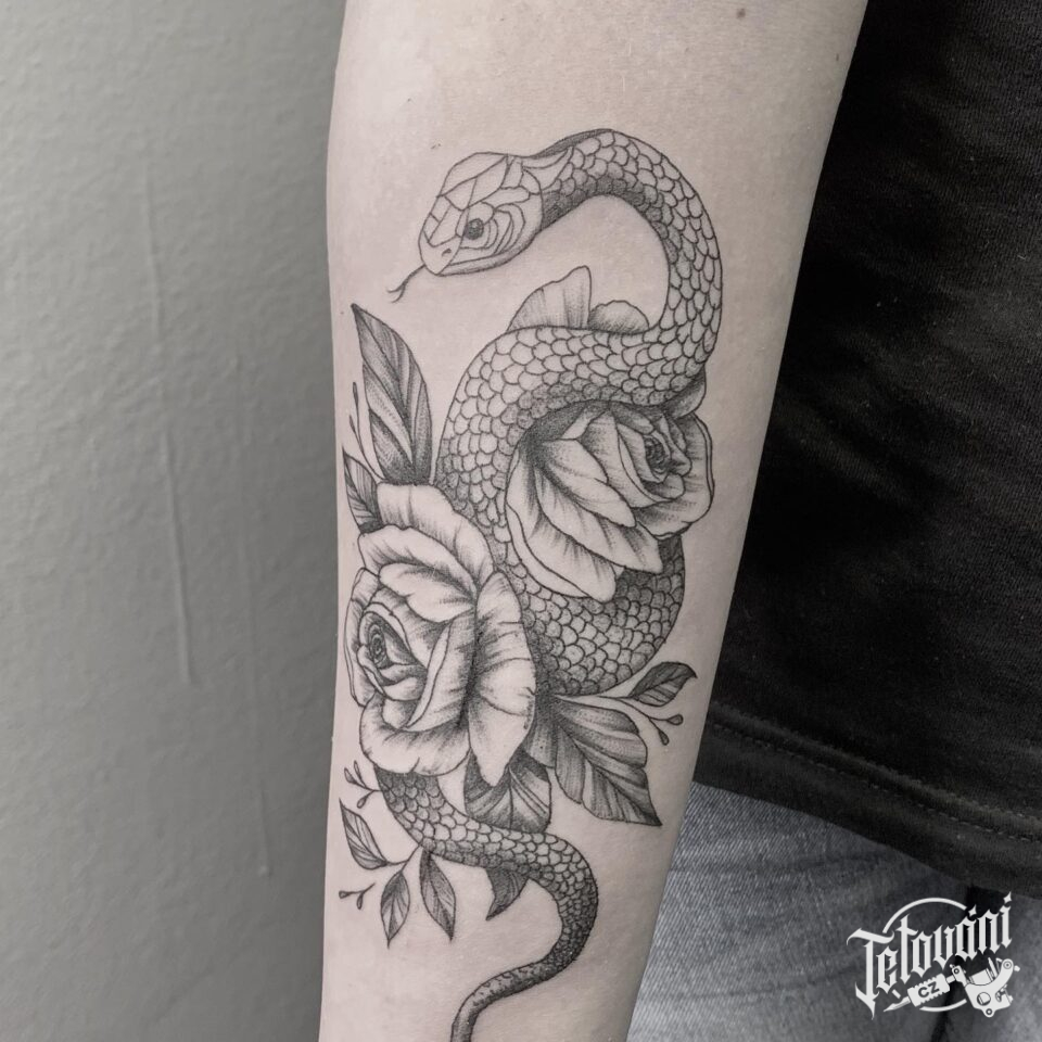 Tetování zvířata, had a květiny na předloktí
