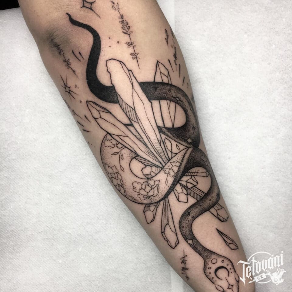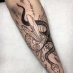 Tetování zvířata, had a květiny na předloktí