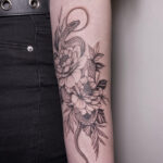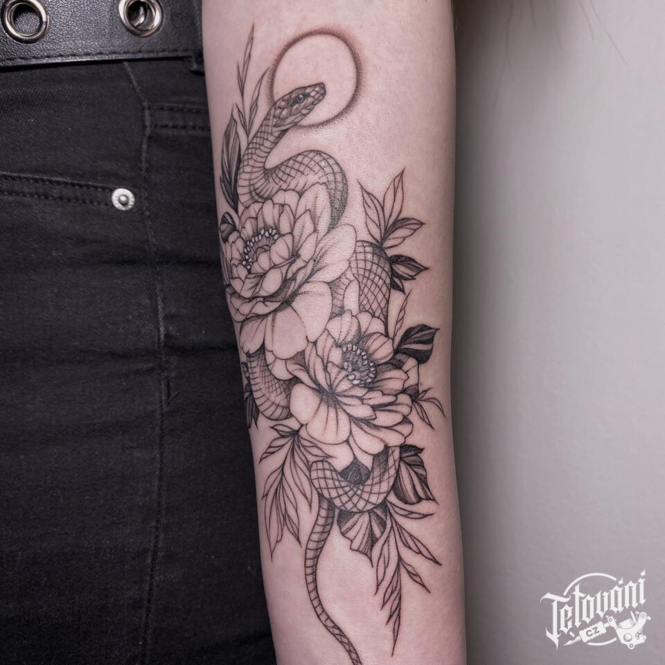 Tetování zvířata, had a květiny na předloktí