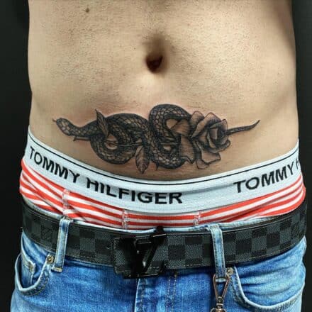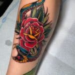 Tetování zvířata, had a květiny, růže na lýtko