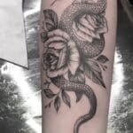 Tetování zvířata, had a květiny, růže na předloktí