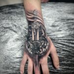 Tetování zvířata, had a předmět, dýka na hřbetu ruky