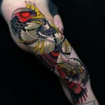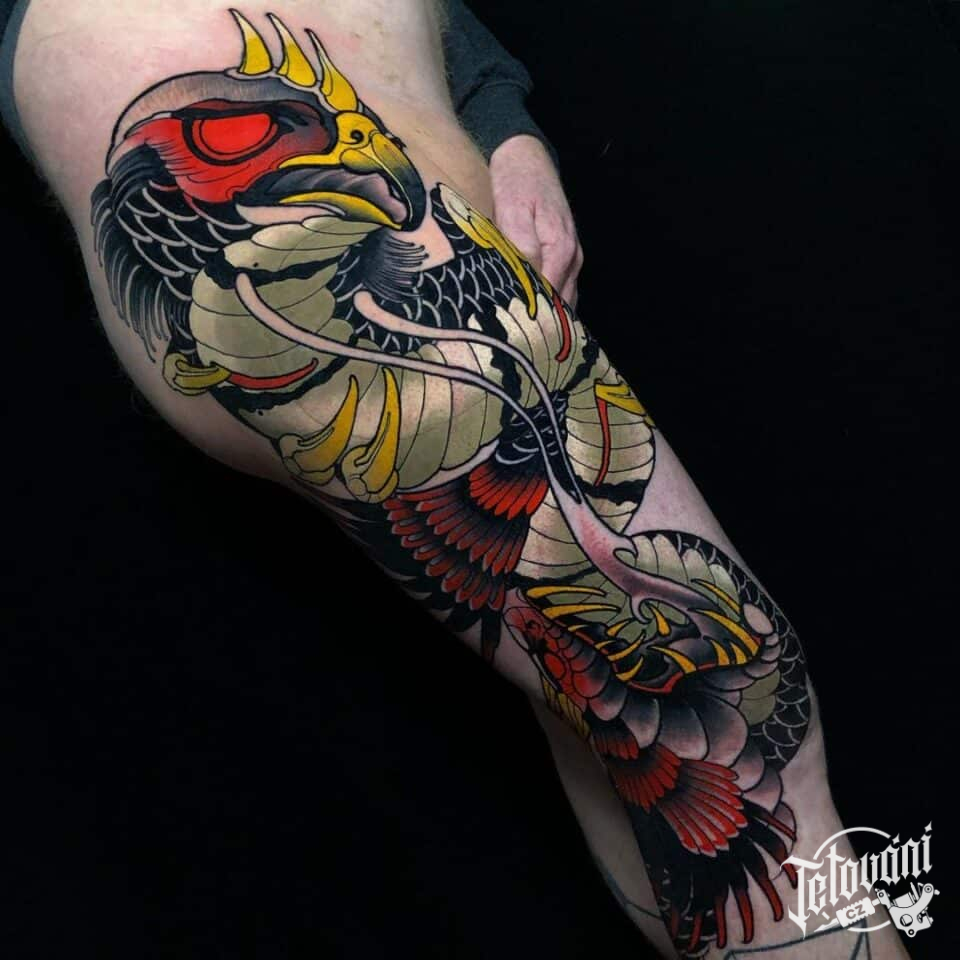 Tetování zvířata, had a pták na noze