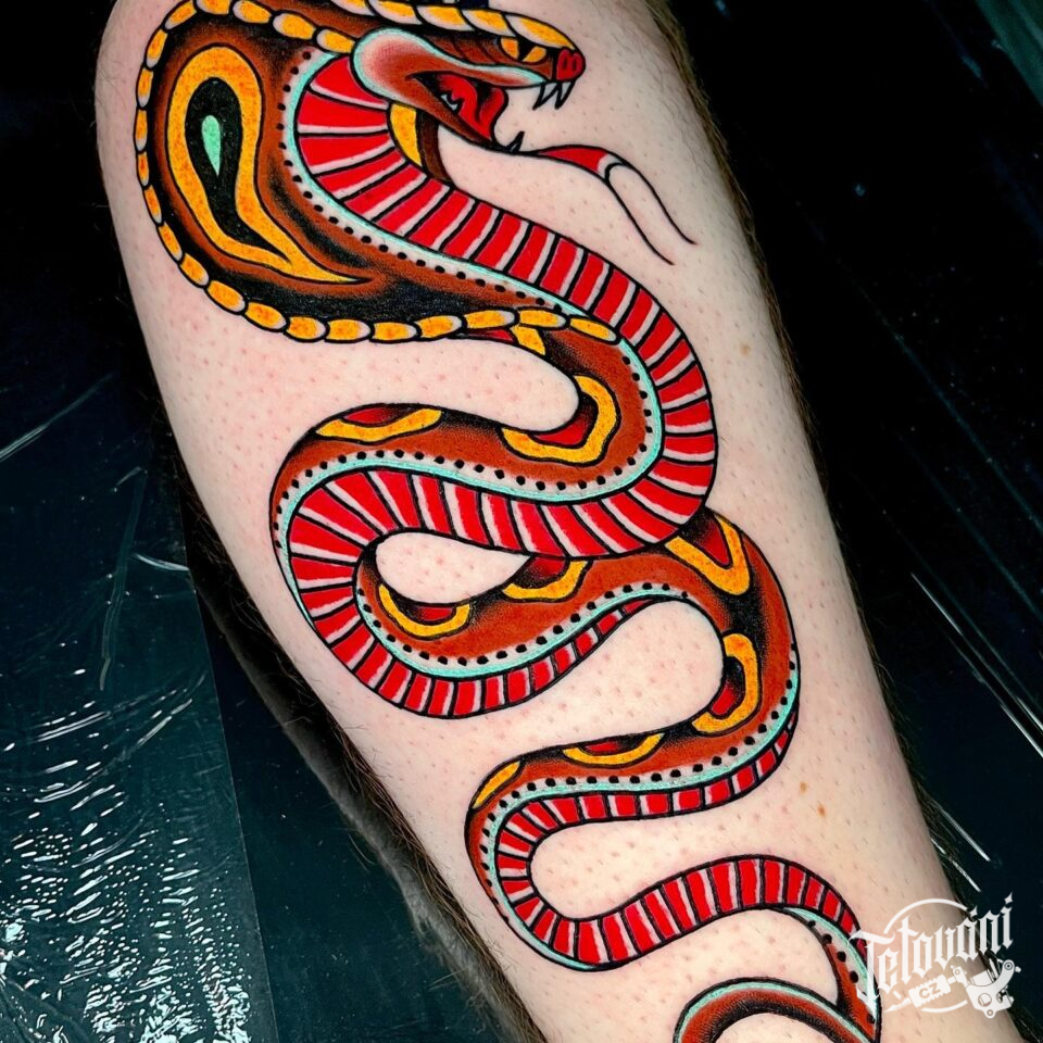 Tetování zvířata, had kobra na lýtku