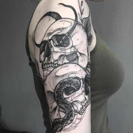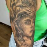 Tetování zvířata, had, kolibřík, portrét ženy s tygrem, rukáv
