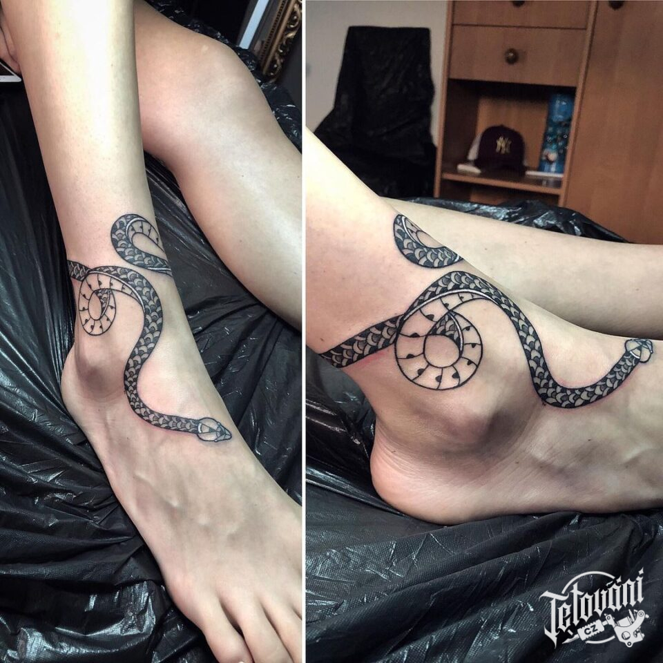 Tetování zvířata, had na kotníku