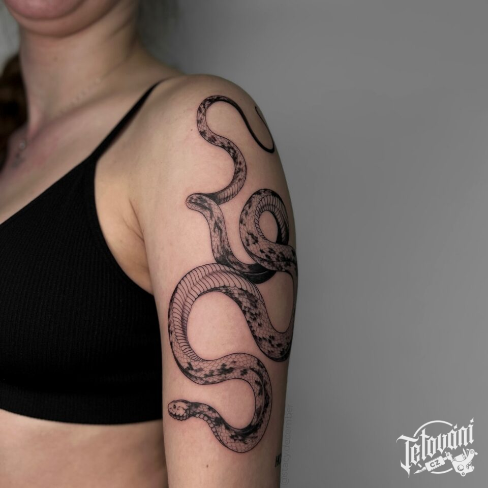Tetování zvířata, had na rameni