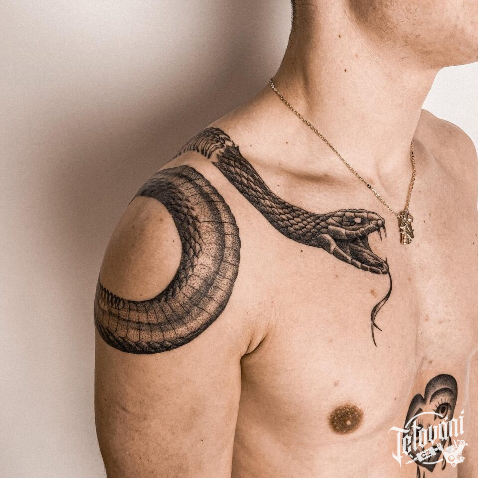 Tetování zvířata, had na rameni