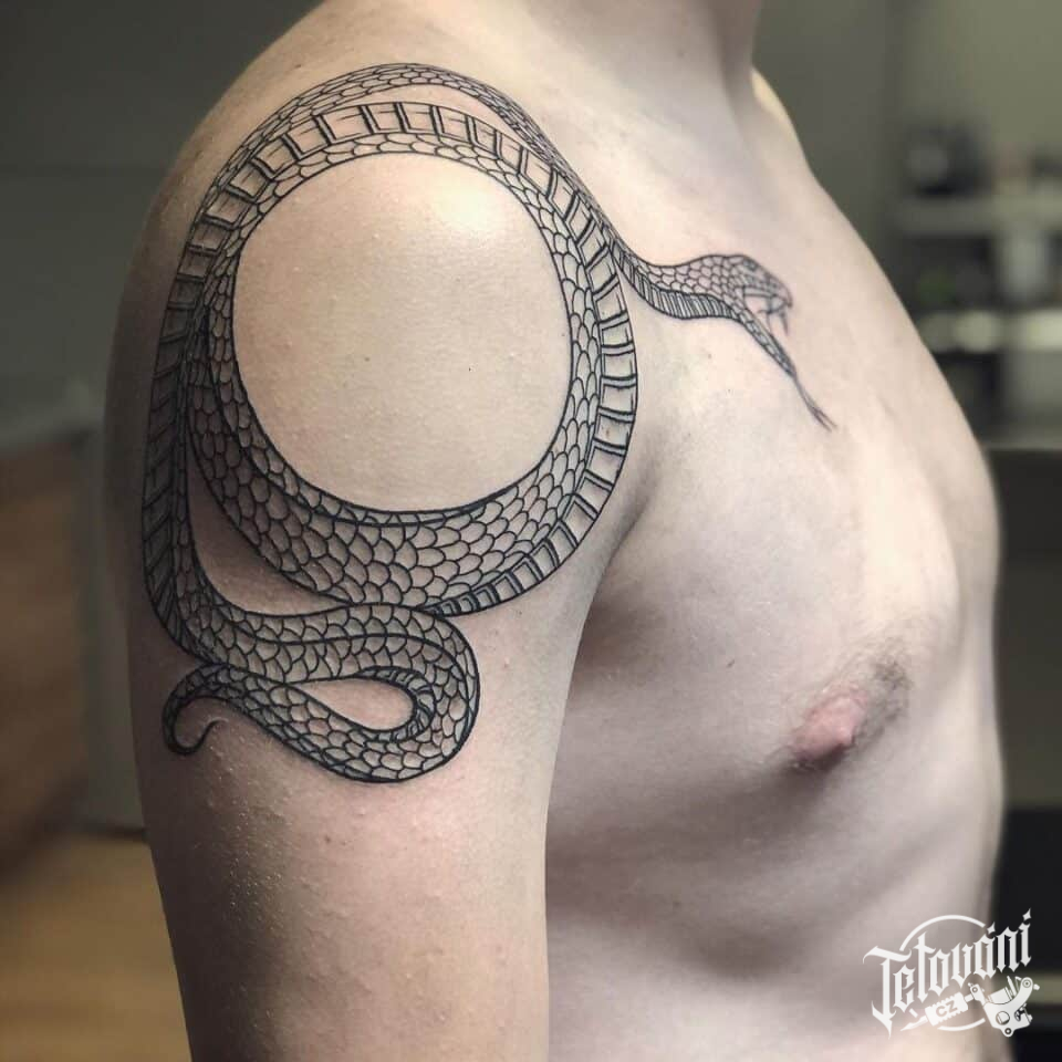 Tetování zvířata, had na rameni